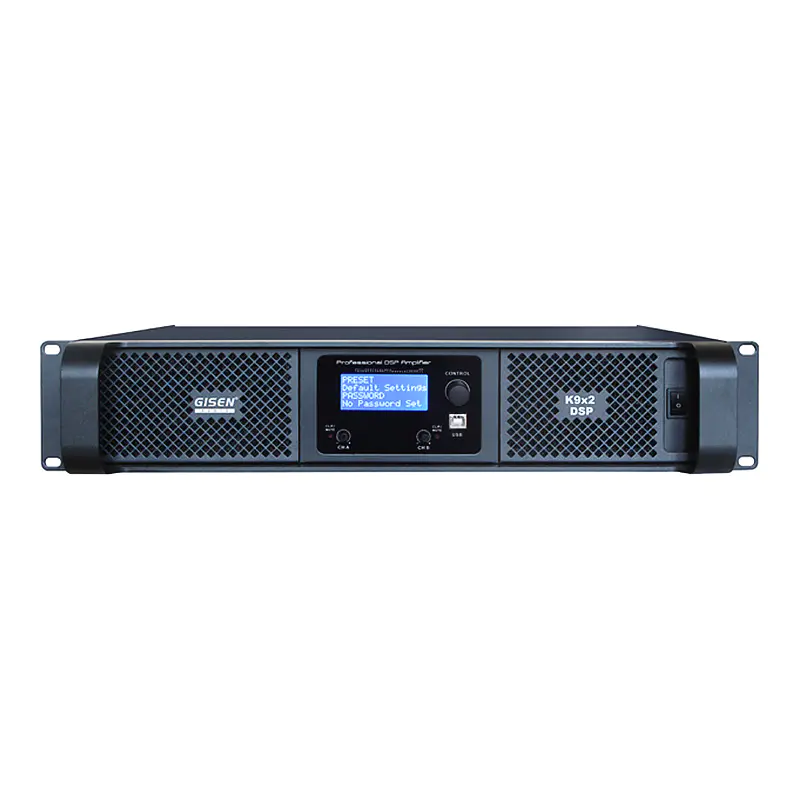 GISEN K-DSP series-digital amplifier equipped with a DSP and network connector. It can be controlled by PC software and multiple amplifiers can be controlled by one computer. The electronic volume control can affectively preventing interference like the traditional potentiometers. Applied to KTV, stadium, performance, meeting room, entertaining clubs, etc.